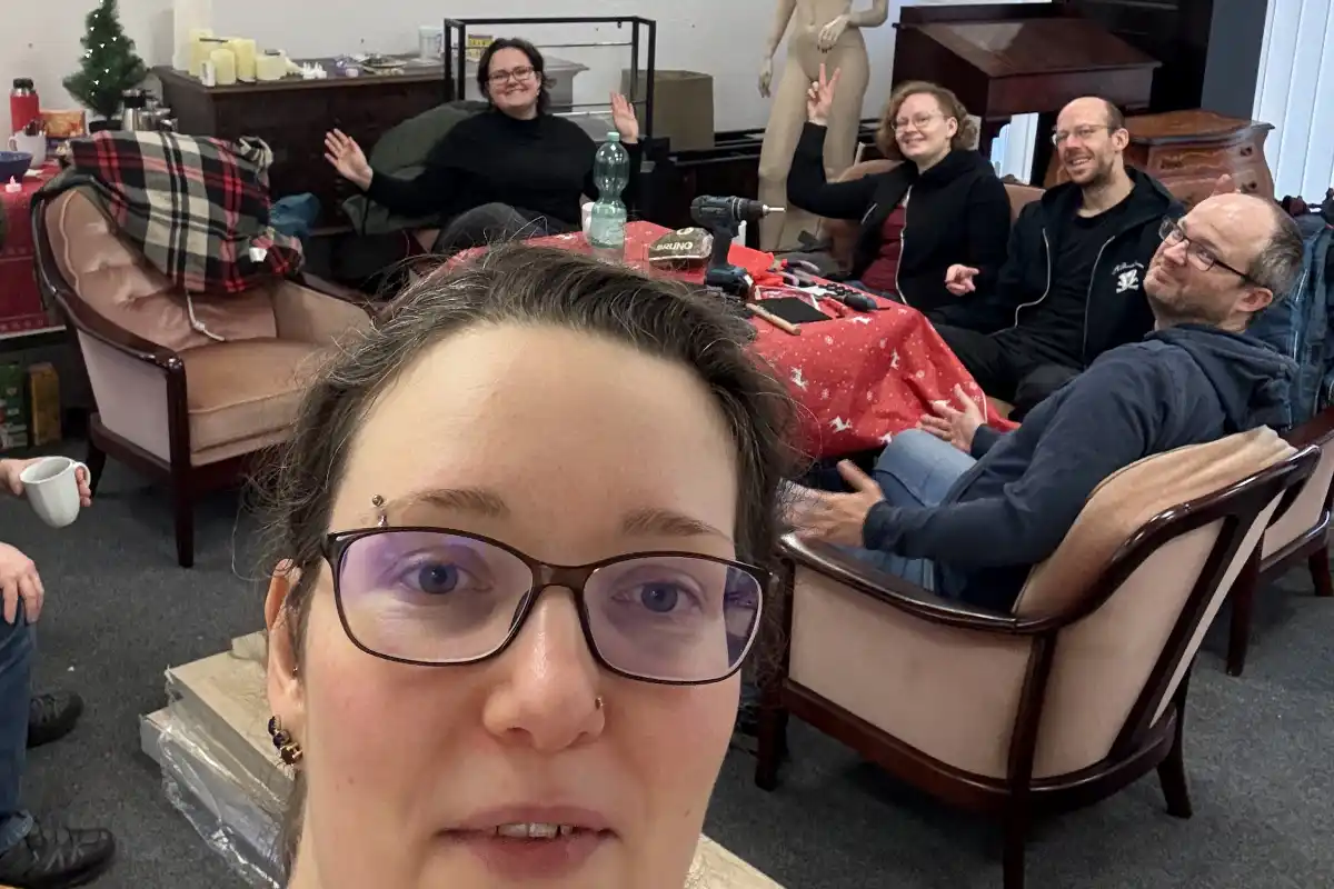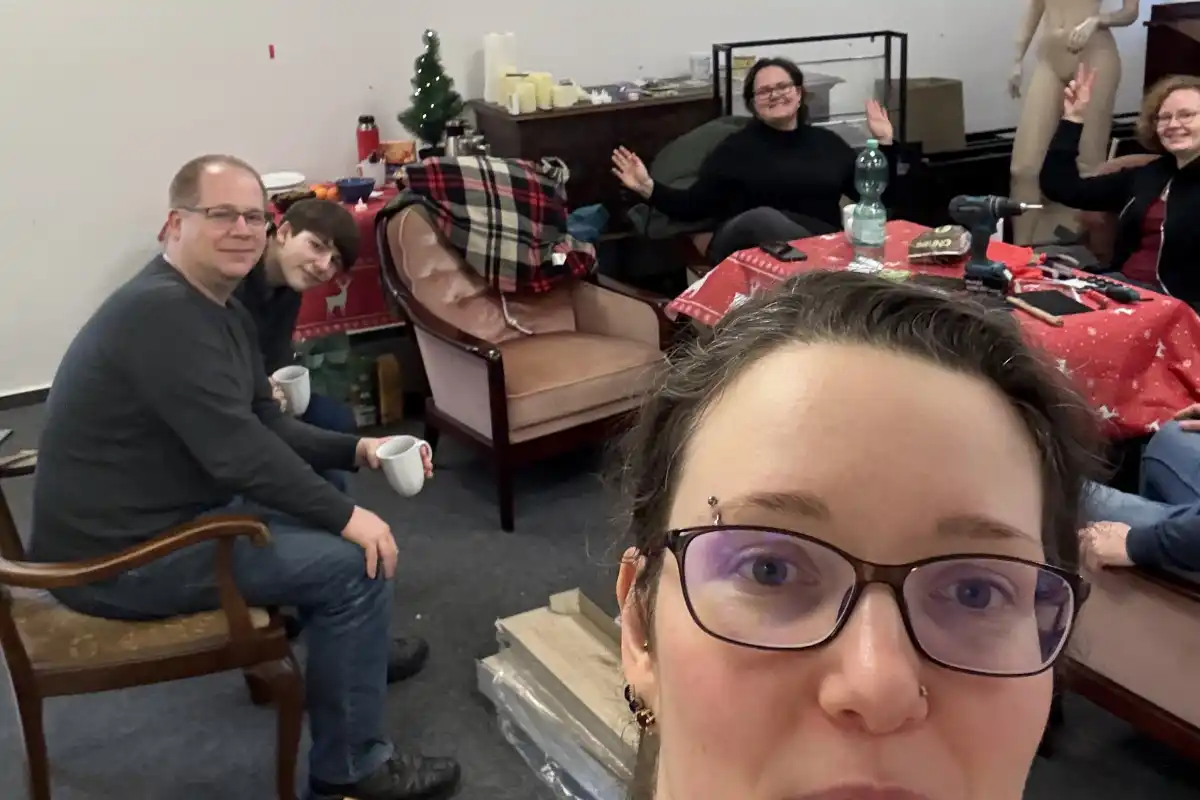Am 21. Dezember gab es nach getaner Arbeit noch einen besonderen Ausklang: Wir haben uns alle in unserer Taverne, die langsam Gestalt annimmt, zusammengesetzt. Bei leckerem Essen und in gemütlicher Atmosphäre konnten wir plaudern, lachen und den Tag gemeinsam ausklingen lassen. Es war ein wunderschöner Moment, der die Gemeinschaft und den Geist unseres Projekts perfekt eingefangen hat. 🍻🧙‍♂️